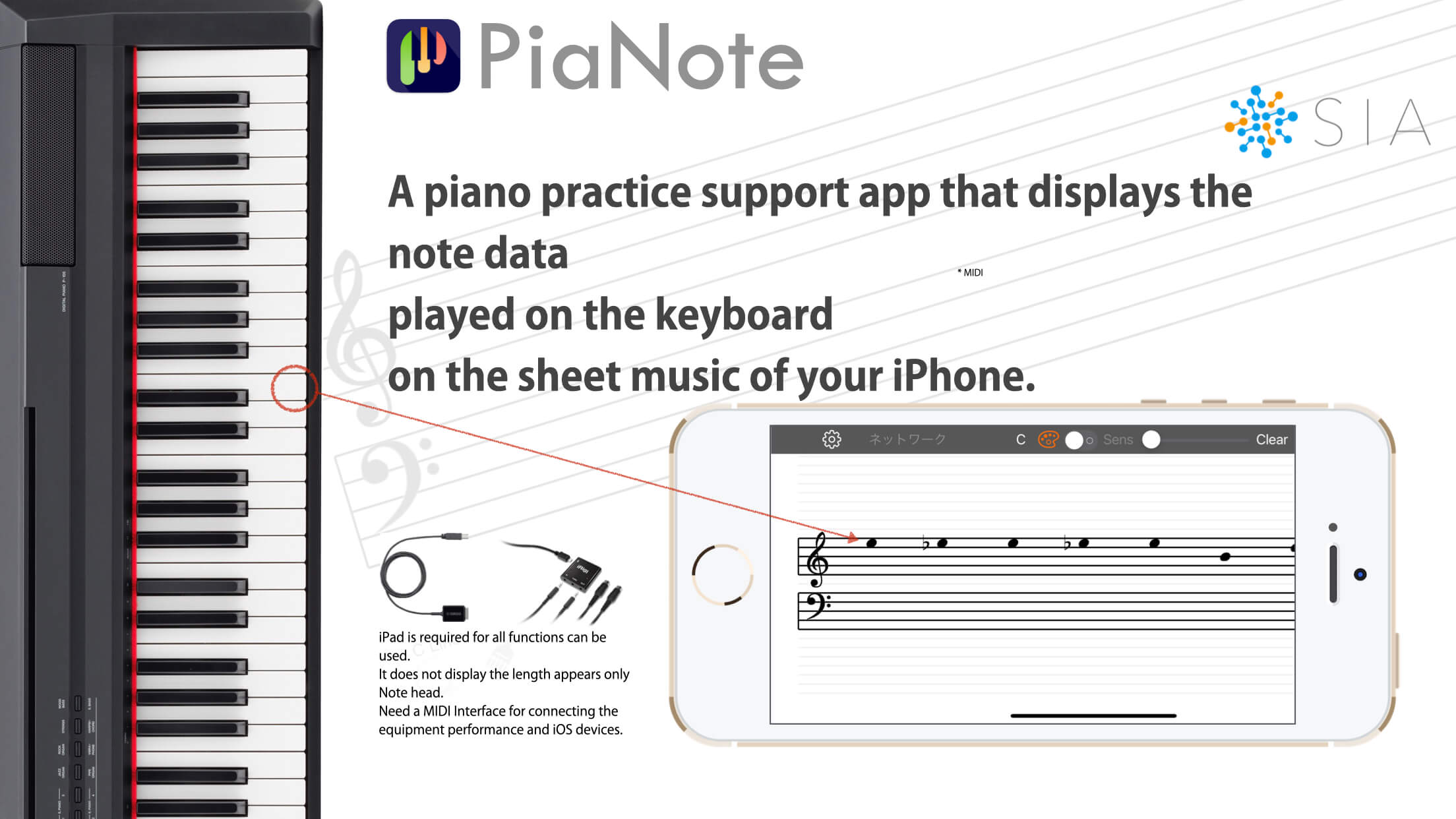 PiaNote is a MIDI note data display application for iPad and iPhone.