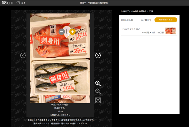 「UOICHI」では、出品店舗の現地店頭の様子がそのまま注文画面になっております。