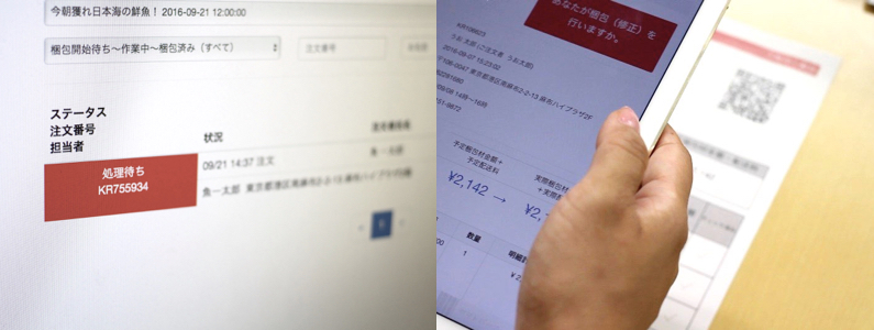 ⑤ 注文書のQRコードを読み込むと梱包開始